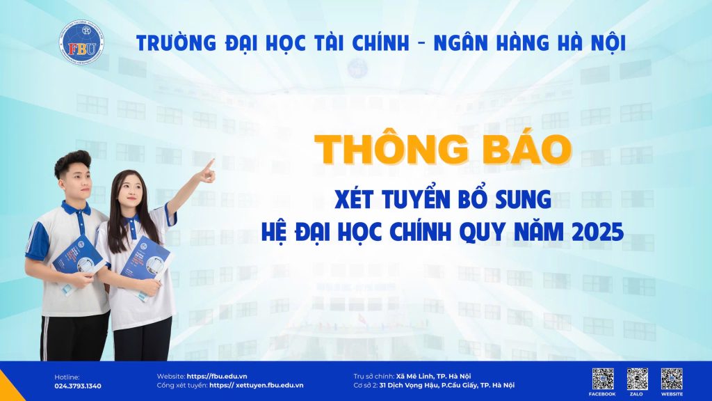 Trường Đại học Tài chính – Ngân hàng Hà Nội thông báo xét tuyển bổ sung đại học hệ chính quy cụ thể như sau: